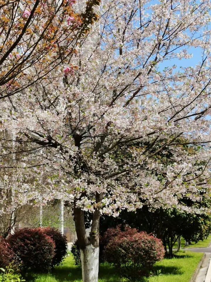 2月底对于腊梅来说或许有点晚,但仍然可见其在枝头绽放。此时玉兰、桃花、梨花、早樱的春日表演正式开始。一场惊蛰一场雨,让众生顿觉春的到来。教育大楼门前的山茶花看她盛,也看她雨后的自如。青山湖边,柳条越来越壮的新芽分担着大树的雄心,枝条往前,绿叶两边,才能追得上光,随风飘扬。宿舍楼下圆滚滚的红花檵木,像是慢慢绽放的烟花,一朵花开一束烟花,与天地共享自己的心动。旁边的含笑花也相继开放,小学不识花,因为有香蕉的味道,称之为“香蕉花”,这种灌木丛的小白花有着自己的独特味道。宿舍区的樱花大道,最不容错过,每一朵樱花都叠着重重花瓣,早早爬上枝头,抖擞着精神,一边是嫩叶,一边是鲜花,舒展着无限可能。而一场雨过后,她们又落在台阶上,落在草地上,像是给大地的春季限定樱花皮肤。